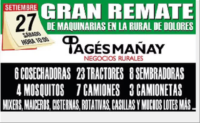 El remate estará a cargo del martillero Víctor Hugo Velazco.